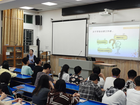 为进一步提升信息工程学院学生心理工作者的专业素养和实践能力,促进学生心理健康教育的深入开展,信息工程学院于2024年5月21日在教学综合楼105教室开展了“关爱心灵,拥抱阳光”为主题的学生心理工作者培训讲座。
