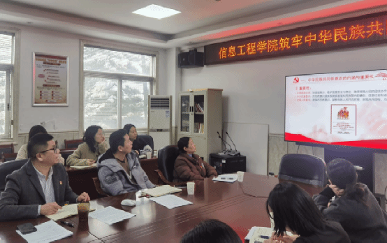 为深入学习贯彻落实习近平总书记关于加强和改进民族工作的重要思想,进一步铸牢中华民族共同体意识。3月14日上午,信息工程学院党总支组织开展“铸牢中华民族共同体意识”主题党日活动。信息工程学院全体教工党员参加活动,本次活动由党总支专职副书记赵楠主持。