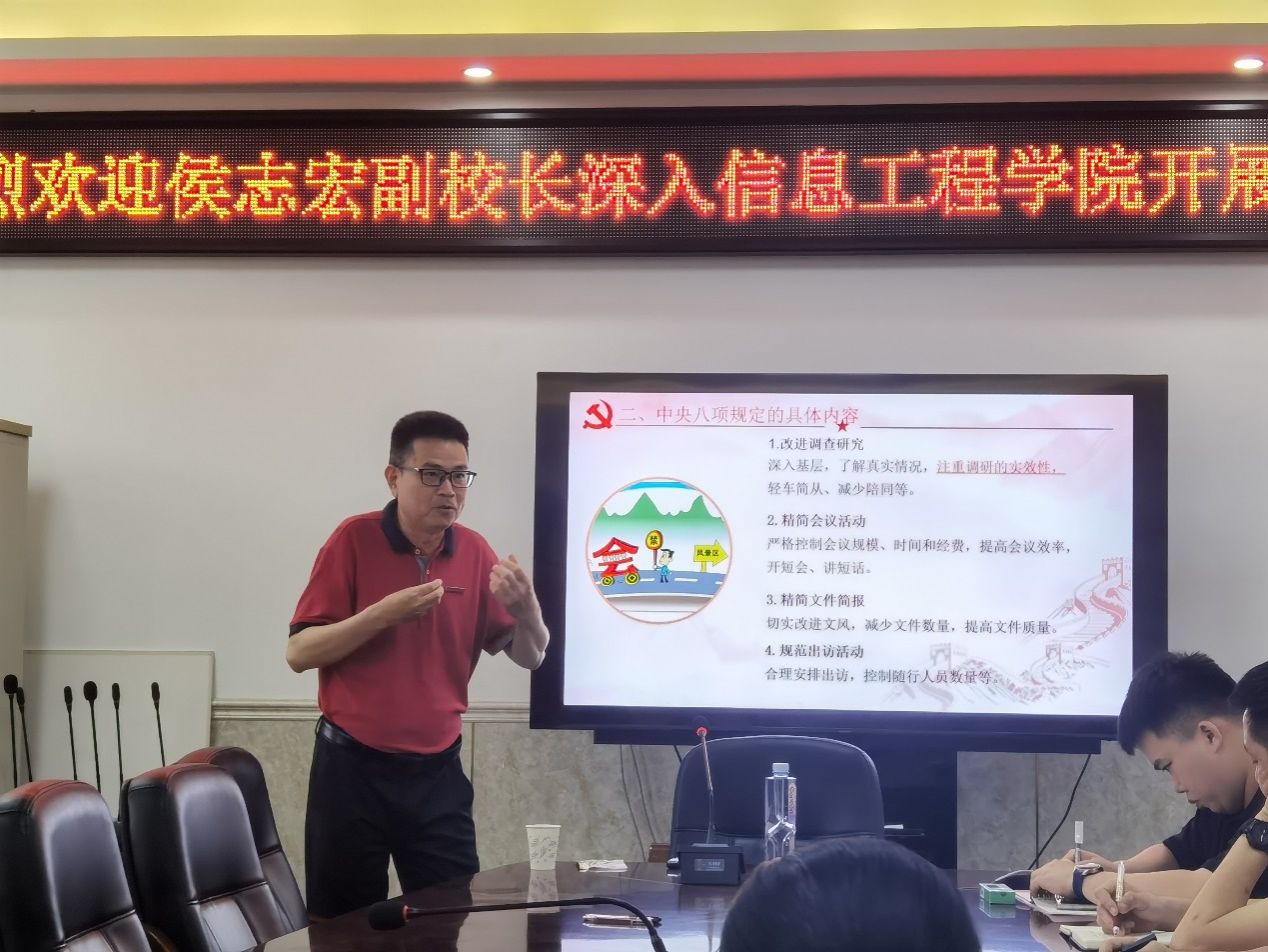 6月3日下午,学院党委委员、副院长侯志宏以“作风建设常抓不懈”为主题,在教学楼(1)407会议室为发展规划处、信息工程学院师生党员讲授专题党课。