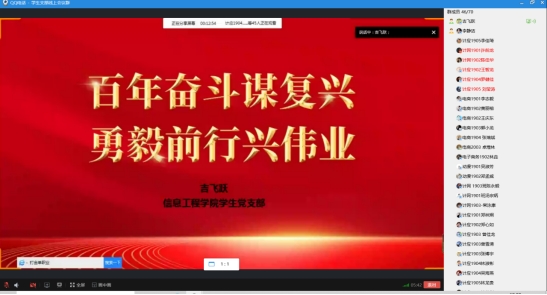 2022年3月6日晚上,我院团总支书记吉飞跃同志以“百年奋斗谋复兴,勇毅前行兴伟业”为主题,以线上教学的方式为我院学生党支部毕业班党员讲授形势与政策课。