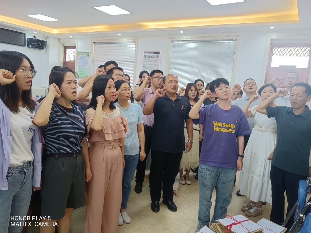 最后,全体教职工党员面向党旗重温入党誓词, 党员同志们举起右手、握紧拳头,重温入党誓词,表达为党的事业奋斗终身的决心和愿望。庄严而肃穆的重温入党誓词活动,使每一位党员再一次接受了心灵的洗礼,加强了党性锤炼和党性修养,增强了每位党员的政治意识、大局意识、核心意识、看齐意识。