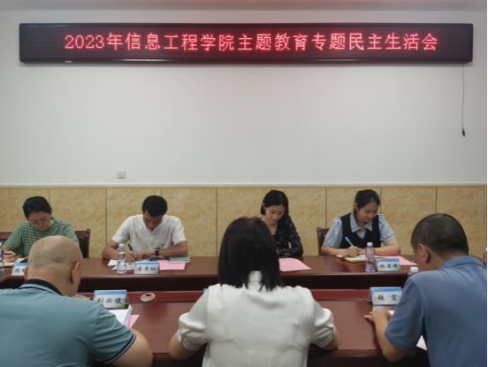8月29日上午,信息工程学院党总支在培训楼八楼会议室召开学习贯彻习近平新时代中国特色社会主义思想主题教育专题民主生活会。校主题教育协调推进组一组组长詹其仙,成员林莹、林君瑾、陈丽珊莅会指导,学院党总支委员参加会议,会议由党总支书记陈小华主持。