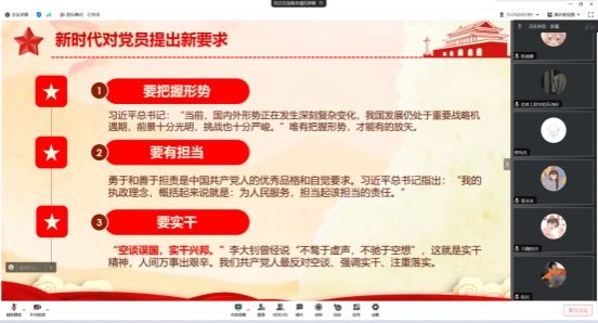 吴瑾副院长从新时代对党员提出新要求、我是共产党员、践行群众路线—乐于奉献、永葆共产党人的本色四个方面,向我们学生党员介绍了如何才能做一名新时代的合格共产党员。
