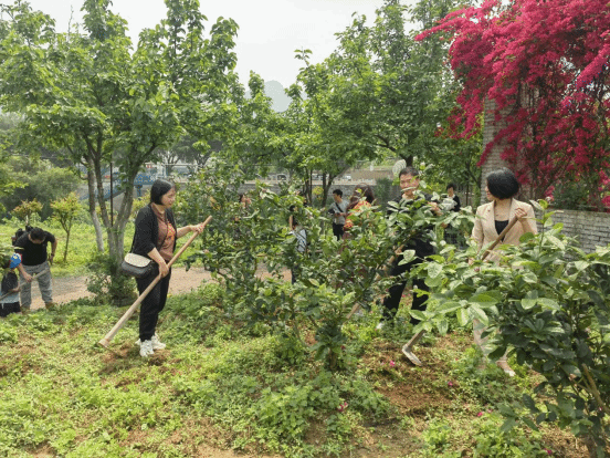 随后全体党员来到相思岭大学生创业园西区,践行劳动精神,开展劳动教育活动。西区是我院相关专业学生进行果树种植养护的实践基地,内含桑葚园、金桔园、西瓜地、草莓田、杨桃园、以及窑洞等农业农田风光、历史农耕痕迹。