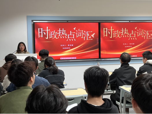 (学生第一支部书记陈培颖进行《时政热点词汇的解读》授课)