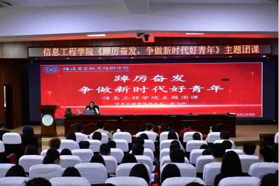 5月7日,信息工程学院团总支书记吉飞跃老师在闽台楼二楼学术报告厅开展《踔厉奋发,争做新时代好青年》的主题团课,信息工程学院第二十届团总支、学生分会、部门干事代表以及班导培训成员参与团课学习。团课围绕党的二十大内容和精神,学习习近平总书记给青年大学生历次回信精神,勉励青年学生把自身的发展融入到国家和时代的要求中去!用青春梦托起中国梦,以勇立时代潮头的勇气,以劈波斩浪的锐气,向着中华民族伟大复兴的中国梦阔步前行!张贤瑞、陈钊等6名学生团干部以进班级的形式,广泛开展宣讲活动。