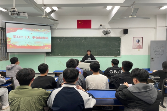 团干部陈钊走进计算机应用技术2207班开展主题为《从党的二十大报告关键词中读懂二十大》的团课宣讲