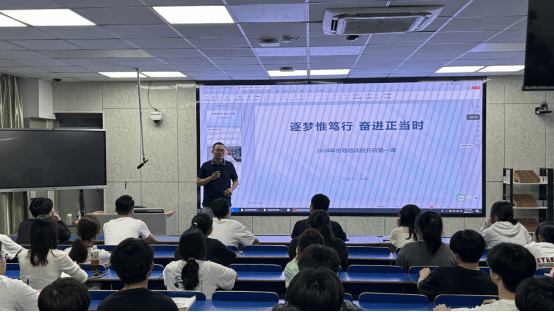 信息工程学院王盛老师为参训学员讲讲授开班“第一课”,课上,王盛老师以“逐梦惟笃行,奋进正当时”为主题,通过校园日常生活案例,讲述班导工作的实际挑战和应对策略,班导作为辅导员与学生之间的桥梁,发挥着榜样力量,王盛老师要求大家要严格要求自己,丰富和加强各项技能,培植信心、耐心和责任心,以最优的成绩通过选拔。