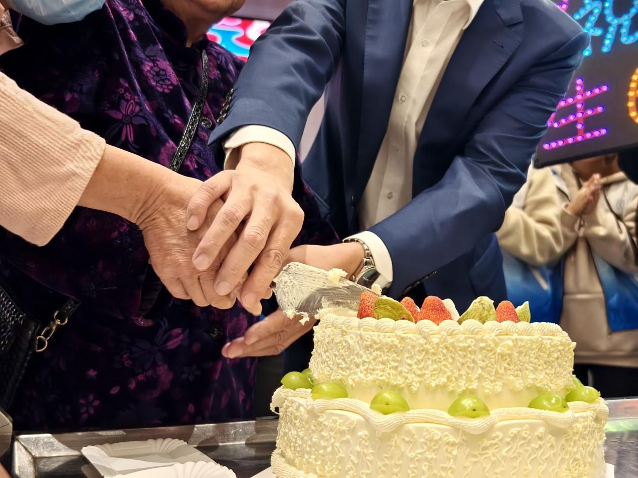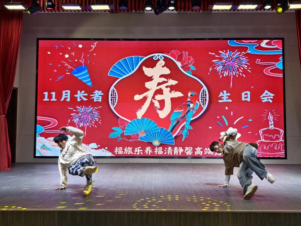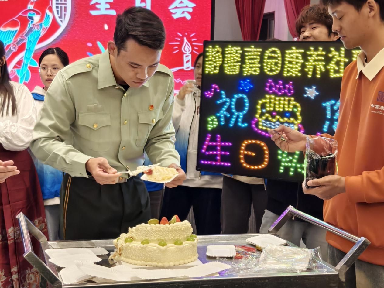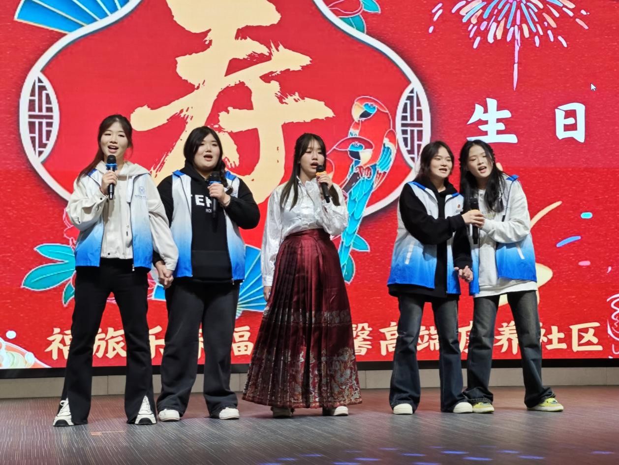 随着音乐的响起,志愿者们以活力四射的舞蹈点燃了现场热情;那铿锵有力的《强军战歌》让长者们回忆起岁月的往事;婉转动听的歌声则诉说着生活中的“小美满”。在祝福声中,志愿者们手捧蛋糕缓缓走来,亲手送到每一位长者手中,传递的小小蛋糕,满含着我院青年志愿者对长者们的深深关心与敬意。曾参与抗美援朝战役的老爷爷作为康养社区的代表对志愿者的到来表示感谢,他表示志愿者的到来让他们度过一次充满回忆,充满欢声,充满喜悦的生日。