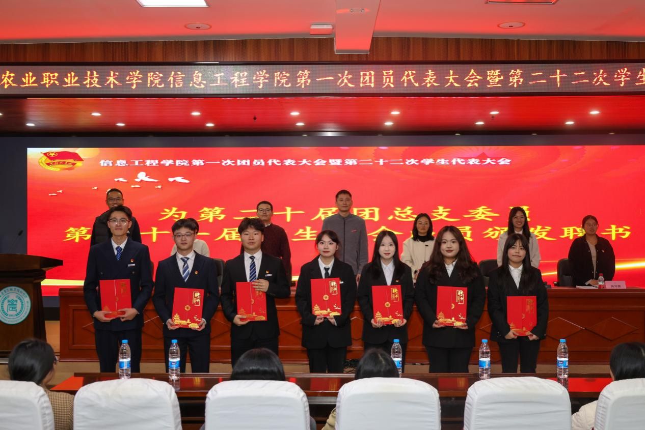 共青团信息工程学院第二十届总支委员代表林佳琪信息工程学院第二十一届学生分会代表余斌在会议上作了工作报告,报告回顾和总结了我院团学组织与学生会开展的各项工作取得的优异成绩,明确了下一阶段的工作目标和任务。最后,大会选举产生第一届团委委员和第二十二届学生分会主席团成员,并为上届学生干部颁发了聘书。