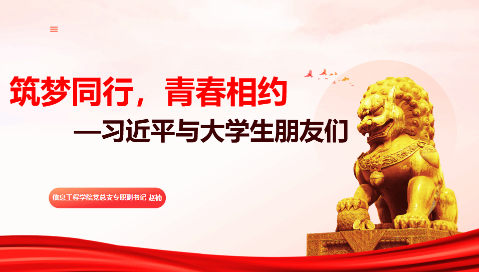 为了深入学习贯彻习近平总书记的重要讲话精神,增强党组织的凝聚力与战斗力,激发广大党员的责任感与使命感,2024年12月13日,信息工程学院专职副书记赵楠为学生第二党支部党员讲授“筑梦同行,青春相约——《习近平与大学生朋友们》”为主题的党课。
