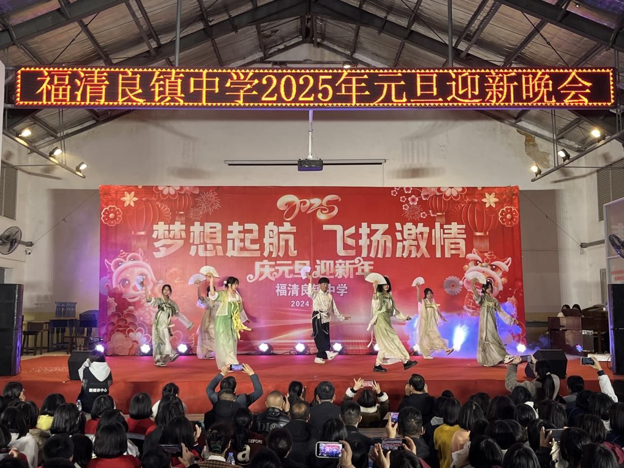 2024年12月30日,随着新年钟声的临近,良镇中学校园内洋溢着节日的喜庆气氛。信息工程学院师生积极响应,组织了一支由14名师生组成的志愿者团队,协助良镇中学成功举办了“梦想启航,飞扬激情”元旦迎新晚会。