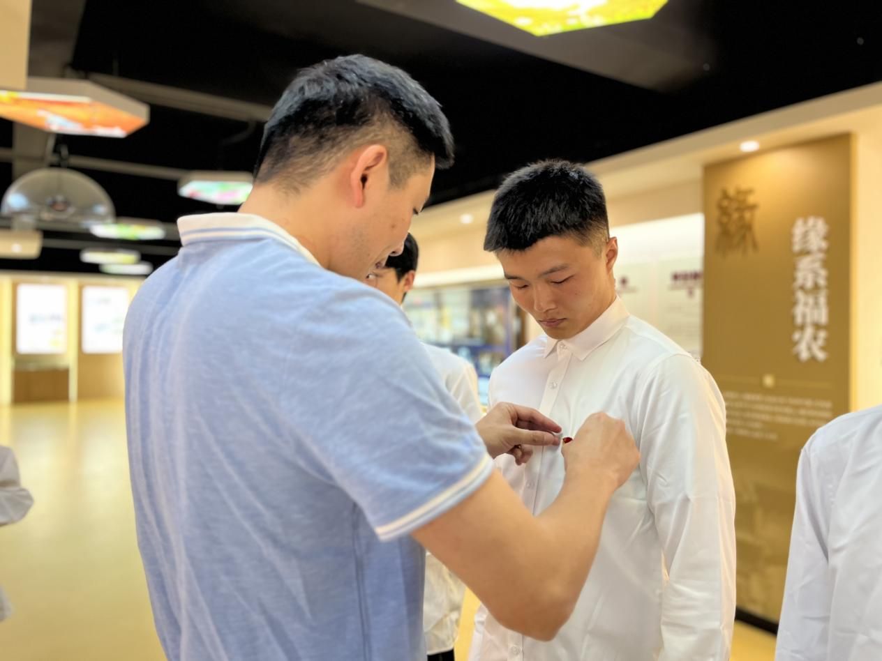 (信息工程学院党总支专职副书记赵楠老师为新团员代表佩戴团徽)