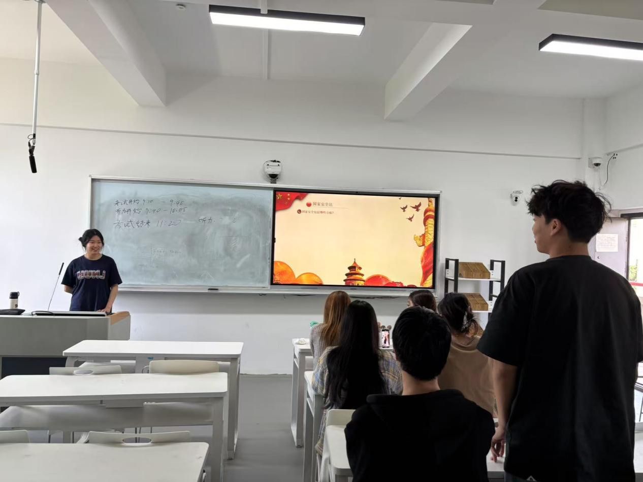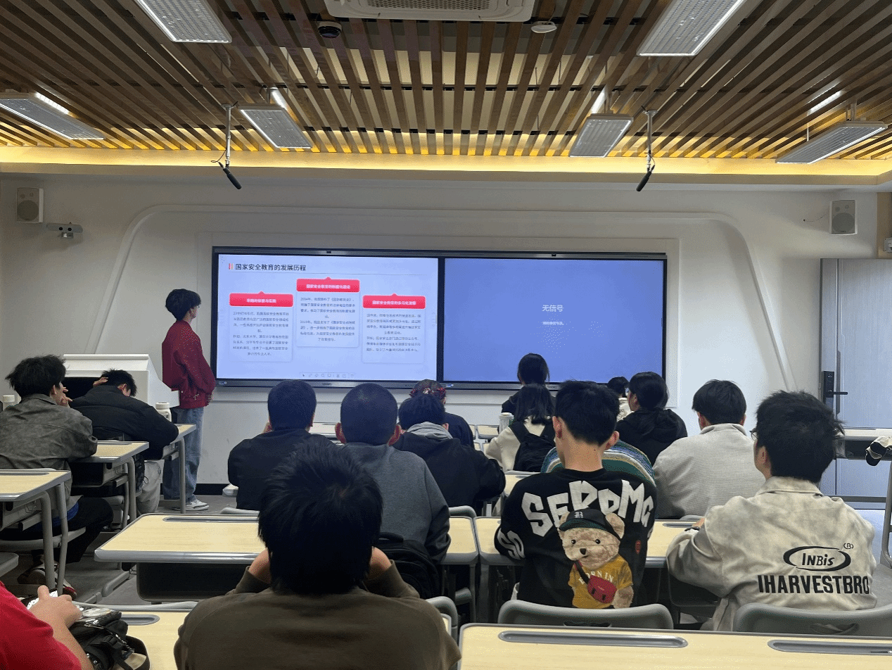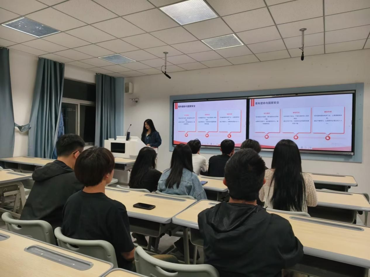 活动现场,安全副班长范智茂系统梳理了国家安全教育的发展脉络,从国际上各国的重视与行动,到我国国家安全教育从国防教育起步,逐步走向制度化、多元化的历程带领同学们深入学习国家安全知识团日活动为同学们筑牢了国家安全的思想防线,使同学们深刻认识到国家安全教育的内涵,也明白了如何面对当前网络安全、经济安全等非传统安全领域的严峻挑战