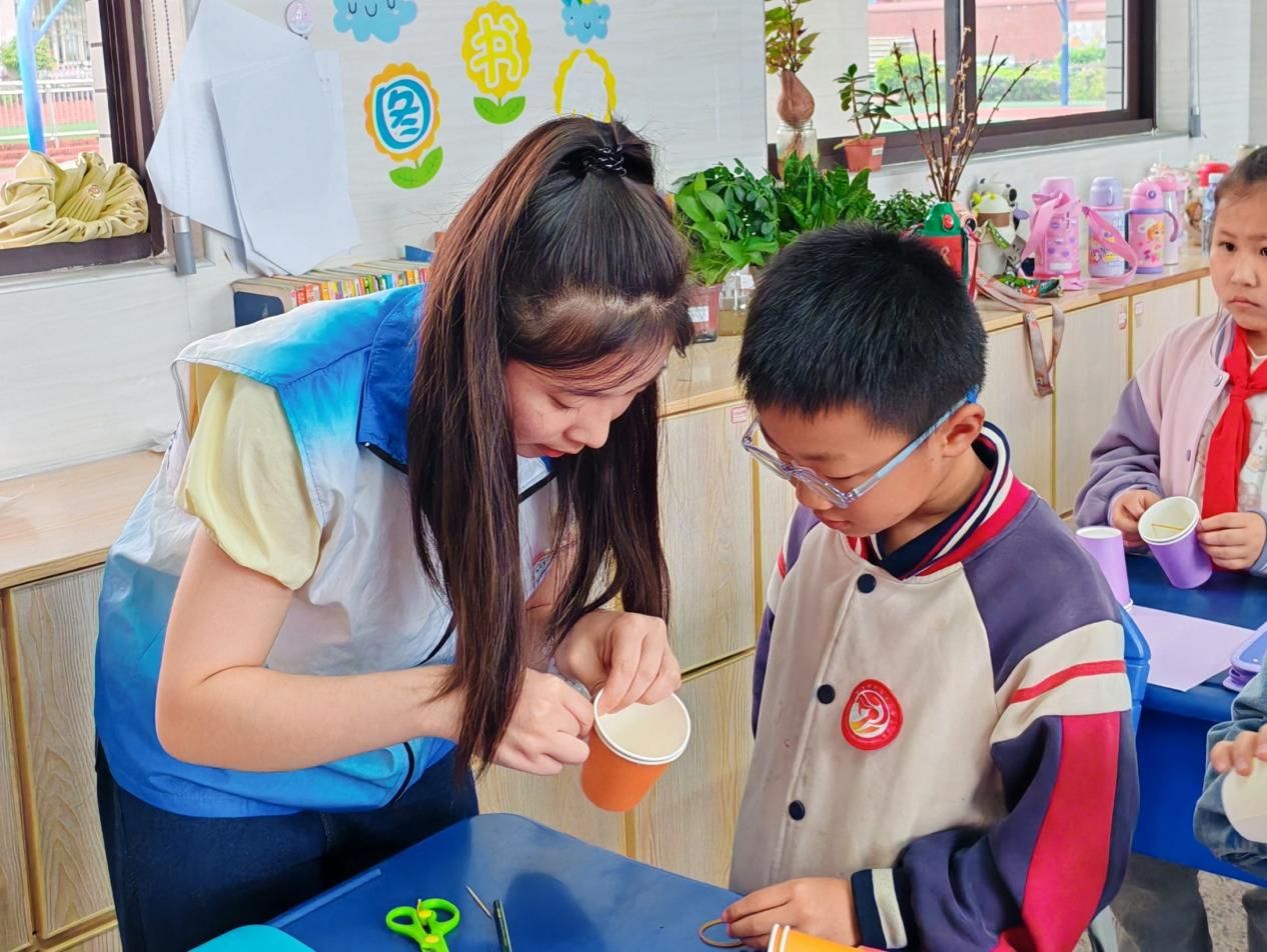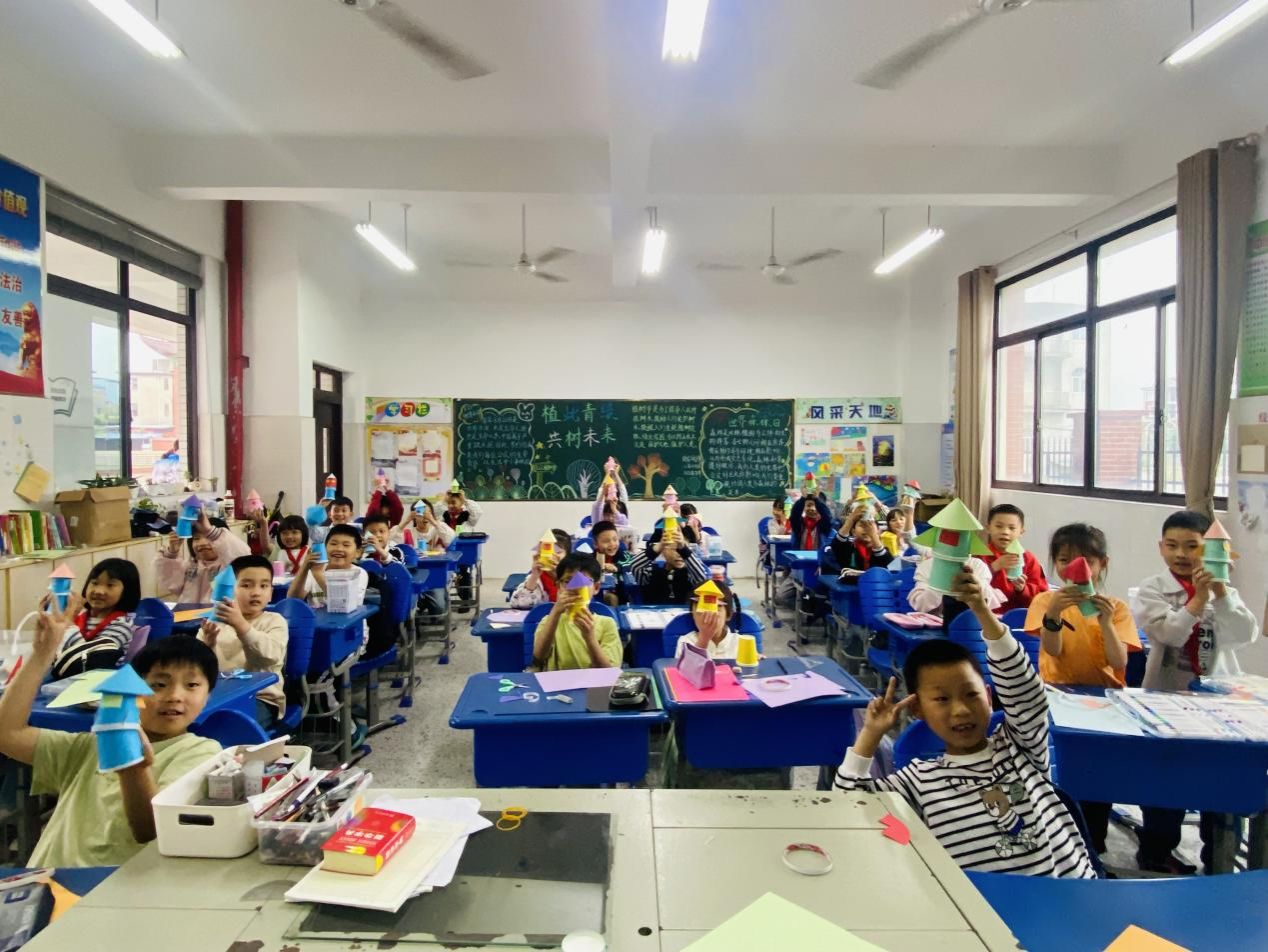 此外,志愿者还指导同学们制作纸杯火箭、创作航天主题绘画作品。小朋友们充分发挥想象力和创造力,用简单的材料制作出造型独特的纸杯火箭,用色彩和线条表达对航天世界的无限遐想,沉浸在实践中感受航天科技的魅力。