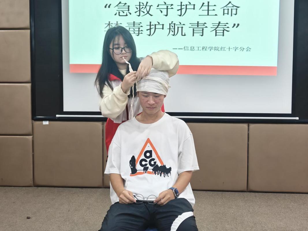 为全面增强青年学生的安全防范意识与自救互救能力,筑牢校园安全防线,2025年10月26日,由信息工程学院“青盾”禁毒宣讲团主办的“急救守护生命,禁毒护航青春”主题急救培训活动在创新大讲堂隆重举行。本次活动将急救技能与禁毒知识深度融合,为到场师生带来了一场生动而实用的生命教育课。