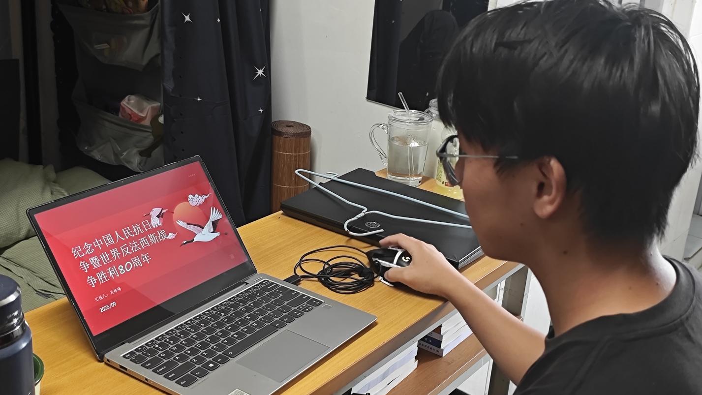 各团支部通过组织专题学习,由团支书领学习近平总书记在中国人民抗日战争暨世界反法西斯战争胜利80周年纪念大会上的重要讲话精神,并集体观看阅兵仪式。当装备方队以磅礴气势通过天安门广场时,团员们无不被深深震撼,民族自豪感与时代使命感油然而生。此次活动旨在引导广大团员从抗战历史中汲取精神力量,进一步激发青年学子的历史使命感与时代责任感。