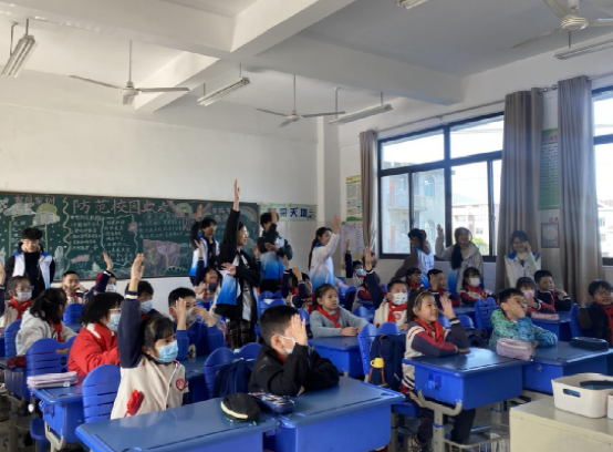 活动伊始,主讲志愿者用亲切的笑容和生动的语言向孩子们介绍活动流程与意义。随后,志愿者通过通俗易懂的提问方式,从基础的语文诗词到趣味数学谜题,从生活常识再延伸至与信息工程相关的科技知识,带领孩子们开启了趣味知识竞赛环节,孩子们频频举手抢答,现场气氛热烈。