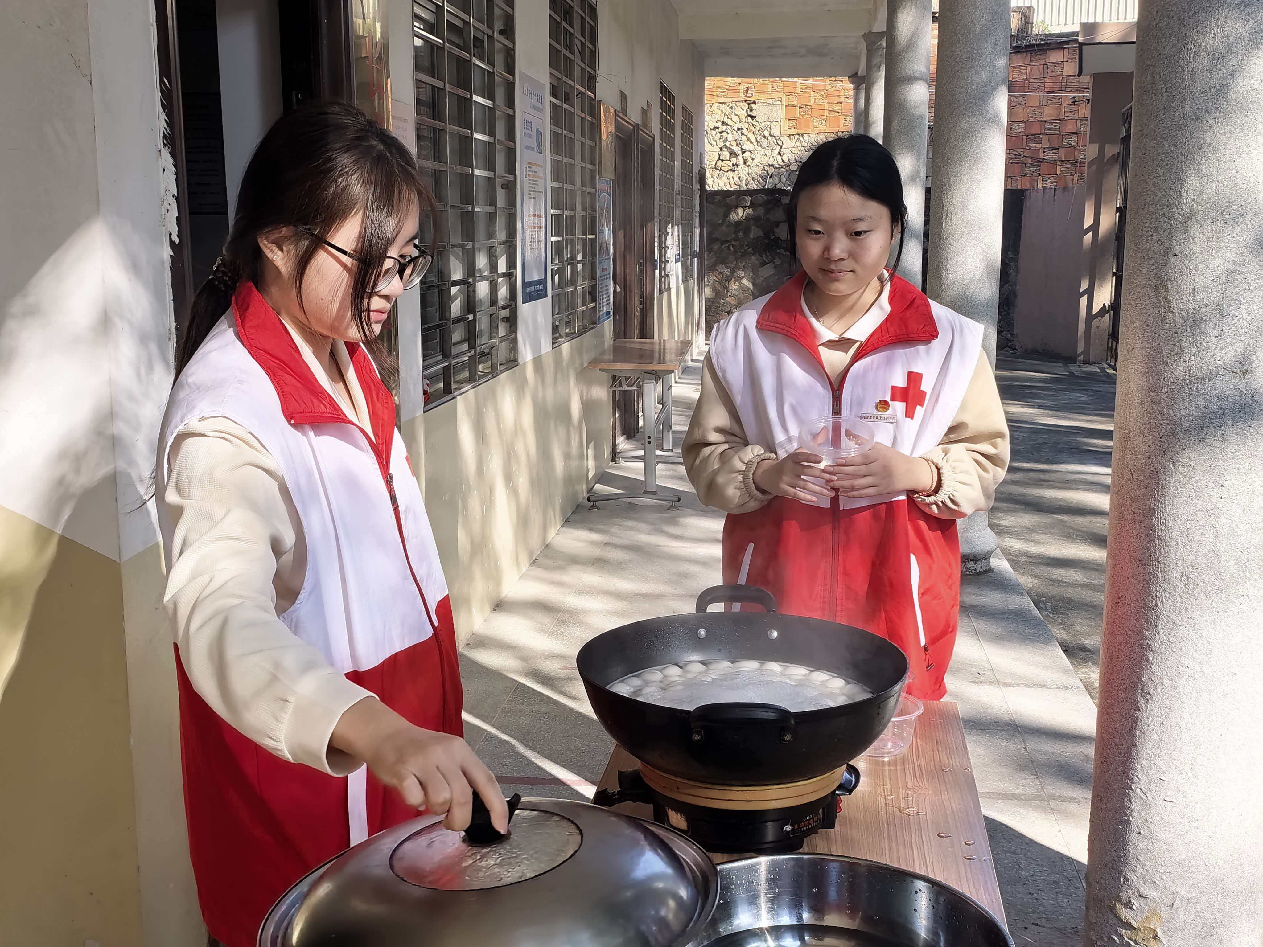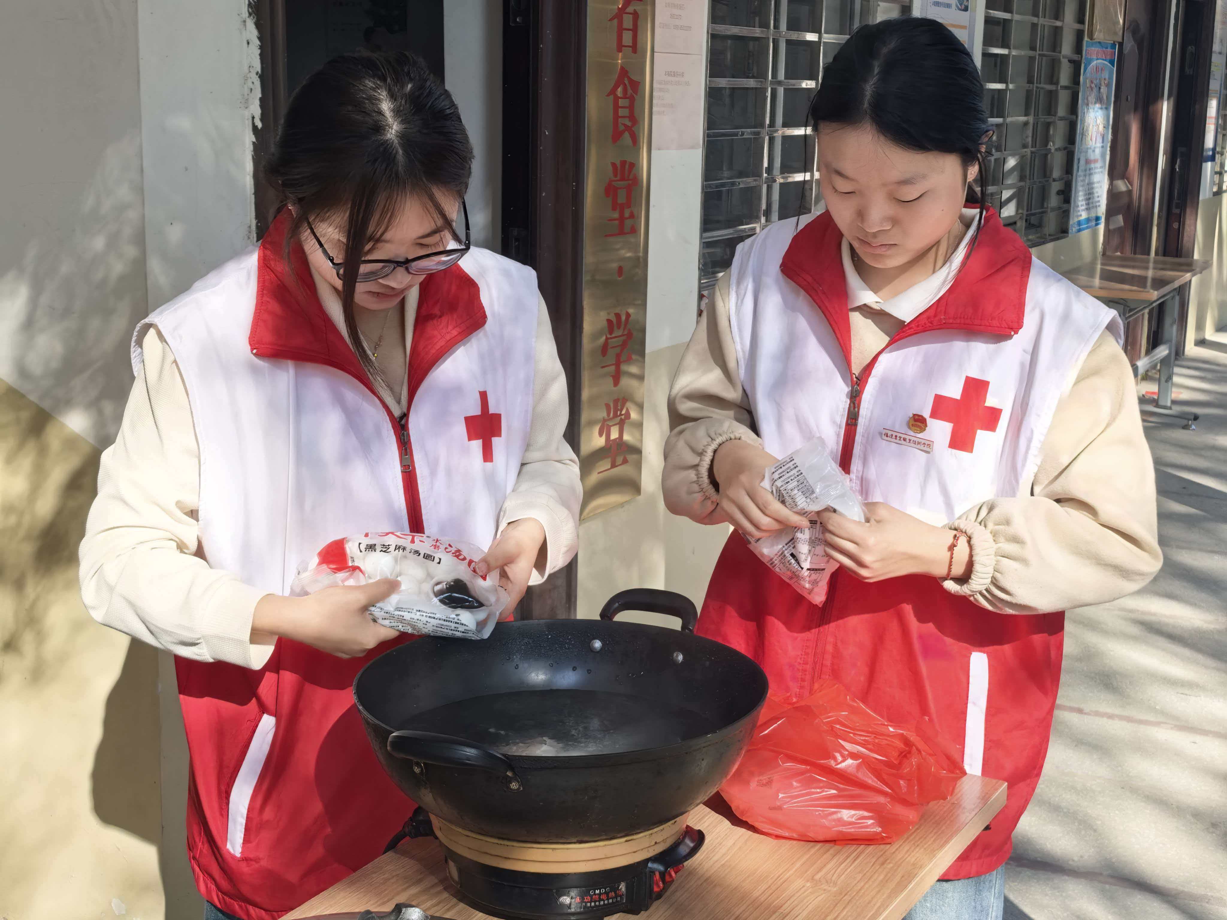 活动过程中,志愿者细心为老人测量血压,询问日常起居与身体近况,一句句关切的叮嘱也将温暖送入老人心间。随后,志愿者精心安排了套圈、叠叠乐挑战、剪纸等趣味小游戏,老人们纷纷参与,脸上洋溢着幸福感,尽享这份冬日的欢乐与温情。游戏间隙,大家围坐一起动手煮汤圆,白雾袅袅升起,香甜的气息弥漫满屋。老人们一边品尝着软糯的汤圆,一边聊着家常,皱纹里漾开暖暖的笑意。