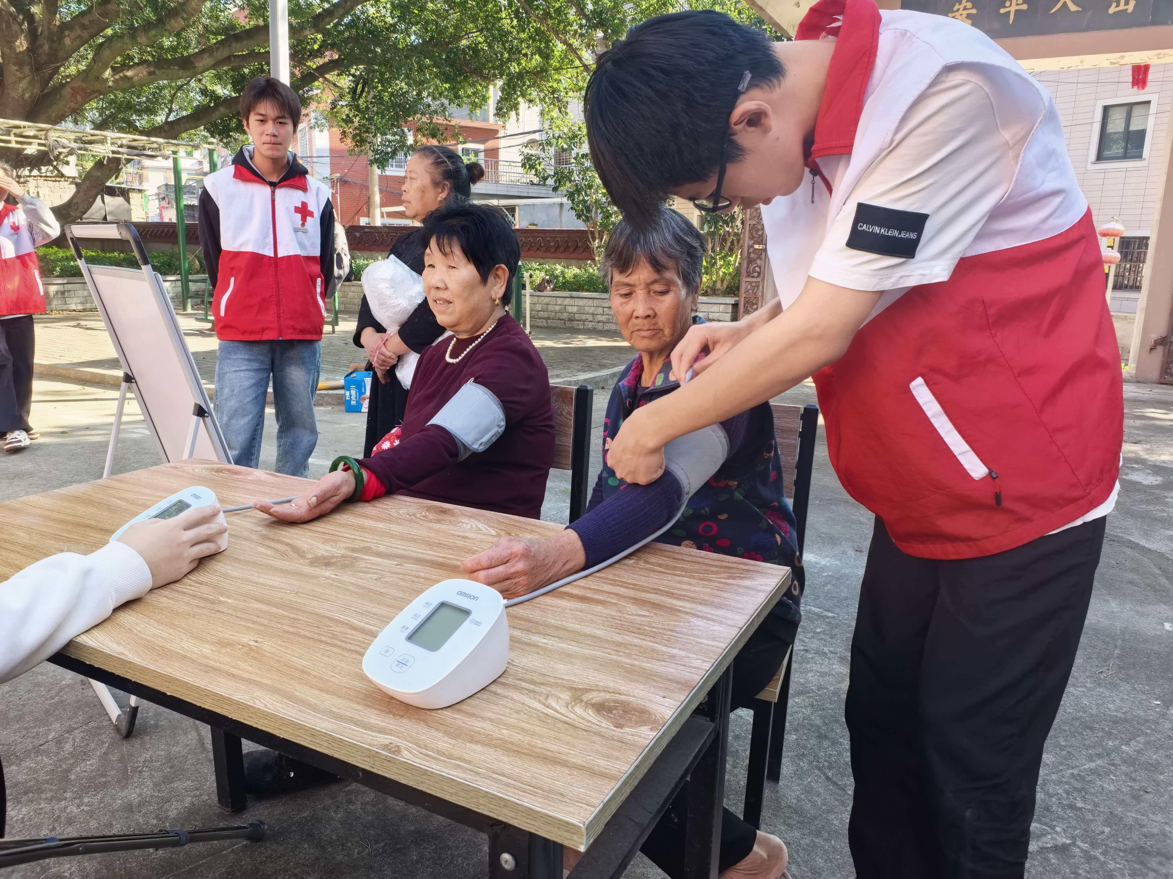 (志愿者为同学测血压)