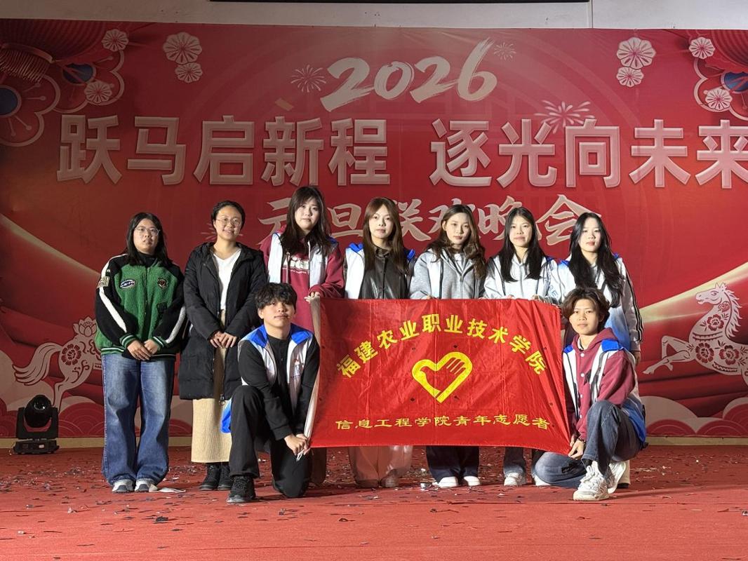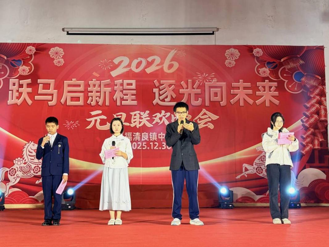 新元肇启,万象更新。2025年12月30日,在新年钟声即将敲响之际,良镇中学的校园里早已洋溢着欢乐喜庆的节日氛围。我院长青志愿服务队秉持志愿精神,组建了一支由14名师生构成的志愿者团队助力良镇中学欢庆元旦,团队成员们满怀热忱,全身心投入到“跃马启新程,逐光向未来”晚会中。