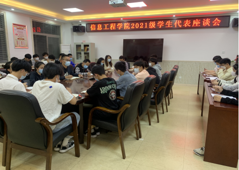 3月15日晚,信息工程学院召开2021级学生代表座谈会,信息工程学院党总支专职副书记黄宏杰老师,学院团总支书记吉飞跃老师、2021级辅导员及2021级各班班长团支书共计40余人参加本次座谈会。