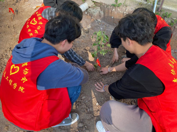 风和日暖山水醒,春到人间草木森。为强化劳动教育,增强绿色环保意识、劳动意识、生态意识,达到为校园增添绿色,净化、美化环境的目的。我院青年志愿者协会于2022年3月12日组织开展“百廿农院,榉木成长”植树节活动。