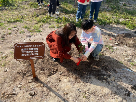 我院在校师生共同参与了此次植树活动,现场气氛热情高涨,师生分组配合,有的挥锹,有的培土,有的夯实,谨遵小组长种植前讲解的种植要领,齐心协力栽种下一株株充满生机和希望的树苗,在建校一百二十周年来临之际,给树苗系上自己对母校的祝福。大家看到那一片自己亲手种下的树苗在微风中摇曳,无一不露出幸福的笑容。