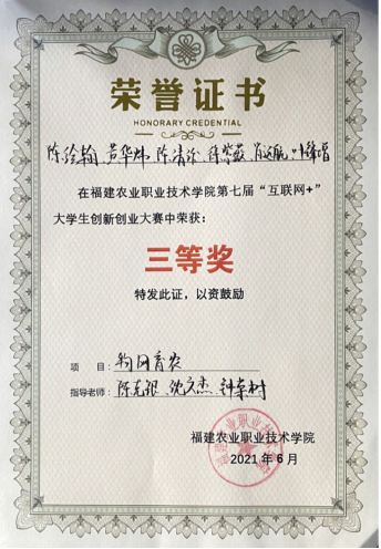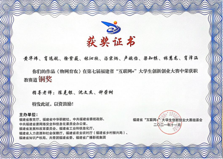 该生始终将“鸟欲高飞先振翅,人求上进先读书”的名言牢记于心,学习态度端正,努力务实,不仅重视课堂效率,更加重视自身学习素养,加强课后练习。在课外,该生不断突破自我,积极参加各项活动。荣获2021年福建省第七届“互联网+”大学生创新创业三等奖,荣获2021年bat365在线登录网站注册赠送36第七届“互联网+”大学生创新创业三等奖,荣获2021年“激情创造梦想,创业赢得未来”创新创业大赛二等奖;荣获2021年荣获校综合二等奖学金。