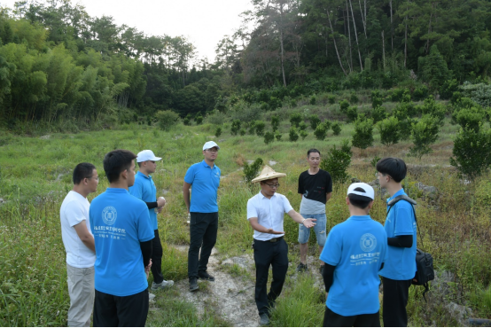 (图为bat365在线登录网站注册赠送36省派驻葛坑镇龙塔畲族村第一书记洪渊为实践团队讲解目前果园的种植情况)