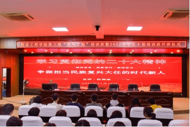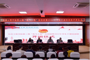 为深入推进我院青年思想引领工作,学习贯彻党的二十大精神和习近平总书记关于青年工作的重要论述,引导广大青年学生进一步坚定理想信念,全面提高大学生骨干、团学干部思想政治素质、政策理论水平、创新能力、实践能力和组织协调能力。11月16日晚,我院第三期“青马工程”培训班暨2022年学生干部培训班在学术报告厅举行开班仪式,出席本次会议的有学院党总支书记欧高政、学生第一党支部书记王盛、学院团总支书记吉飞跃,此次开班仪式由杨舒琦老师主持。