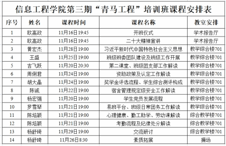 (青马工程课程安排)