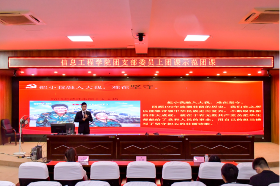 本次示范团课由9位优秀学生代表为新生讲述示范团课注意事项,其中8位同学结合自身工作以及上团课经验,分别给同学们分享了台风、入场礼仪、逻辑思维能力、PPT制作、语音语速、心态、演讲稿等相关注意事项;接着,大数据2001班的方朝宇同学为新生开展了一场“以小我融入大我、青春献给祖国”为主题的完整团课,让2022级各支部委员们对如何开展团课有了更直观的认识;学长学姐们慷慨激昂的演讲赢得了阵阵掌声。