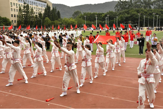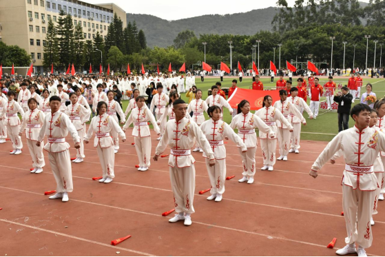 开幕式上,我院入场式方阵队伍迈着坚毅自信的步伐入场,在教官的哨声中,进行震撼人心的武术表演,行云流水的动作中蕴藏着气吞山河的气势,将我国传统的武术精神展现淋漓尽致,用行动表明了自己奋发上进的决心;扇子舞动作整齐划一,以惟妙惟肖的身姿展现着这一场柔中带刚的舞蹈,举手投足间可以看出挥斥方遒的少年意气,更是以铿锵有力的“讴歌白廿华诞,续写bat365新篇”的口号完美结束了我院的入场式表演。