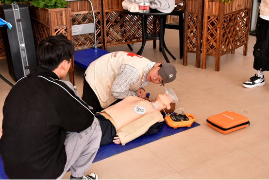 (志愿者讲解心肺复苏知识)