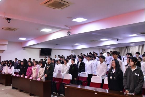(全体师生起立奏唱国歌)