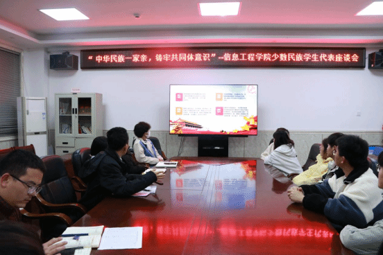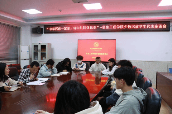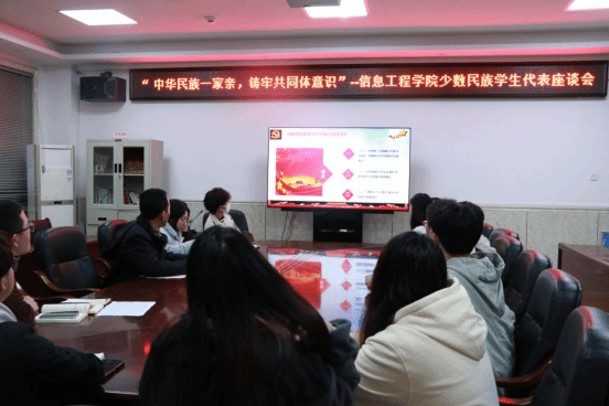为增强民族团结,提高我院学子的凝聚力与向心力,了解少数民族学生的在校情况,筑牢中华民族共同体意识。2023年3月31日晚七点,信息工程学院在教学综合楼407召开“中华民族一家亲,筑牢共同体意识”少数民族学生代表座谈会,学院党总支专职副书记黄宏杰老师、学院团总支书记吉飞跃老师及学工办老师与十五名少数民族学生代表出席本次座谈会。