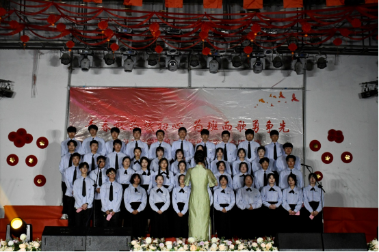 比赛在主持人铿锵有力的话语中拉开序幕,进入决赛的八个班级着装整齐,风格多样,带着少年人独有的意气风发,自信从容地登上舞台。他们的动作整齐划一,眼中闪烁着熠熠星光,歌声嘹亮高亢,饱含对学校的深情厚谊与对祖国的一腔热血。他们风华正茂,歌声朗朗,有“举风鹏之力,携凌云之志,赴星河之约”的勇气与决心。最后,在国旗班带来的两首军歌里,同学们怀着热血与憧憬,自豪与希望,迈步新的征程。此次比赛抖音直播平台共收获563位观众,1.1万点赞。