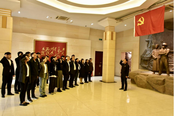 全体党员庄重地高举右拳,共同重温入党誓词。“我志愿加入中国共产党,拥护党的纲领,遵守党的章程……”一句句铿锵誓言在纪念馆内回响,铿锵有力的宣誓,表达了大家对党的无限忠诚、热爱和听党话、跟党走的坚定决心。
