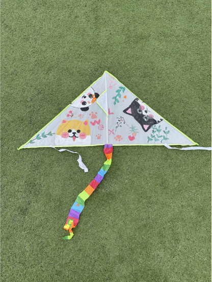 作品以“招财猫”和“锦鲤”为主题元素,寓意年年有余,岁岁平安,纸鸢放飞,寄托美好愿景。