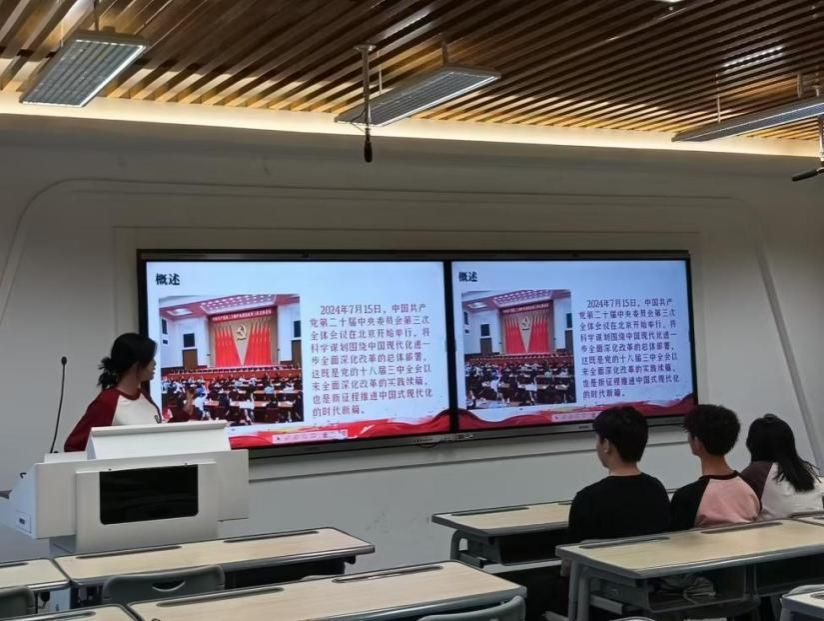 会上,临时团支书向在场团员们简要阐述了活动的背景意义,通过调研资料与视频结合,团员们全面回顾了全会背景、议程及成果,深入学习“一总目标、七聚焦、十四重点改革领域”,重点研讨《中共中央关于深化改革推进中国式现代化的决定》。团支书勉励团员青年们应明确自身在中国式现代化建设中的角色与责任,树立远大的理想目标,为实现中华民族伟大复兴的中国梦而努力奋斗。