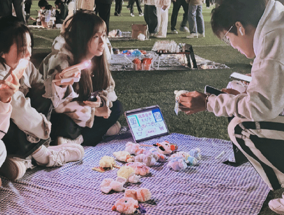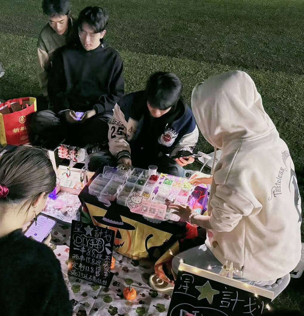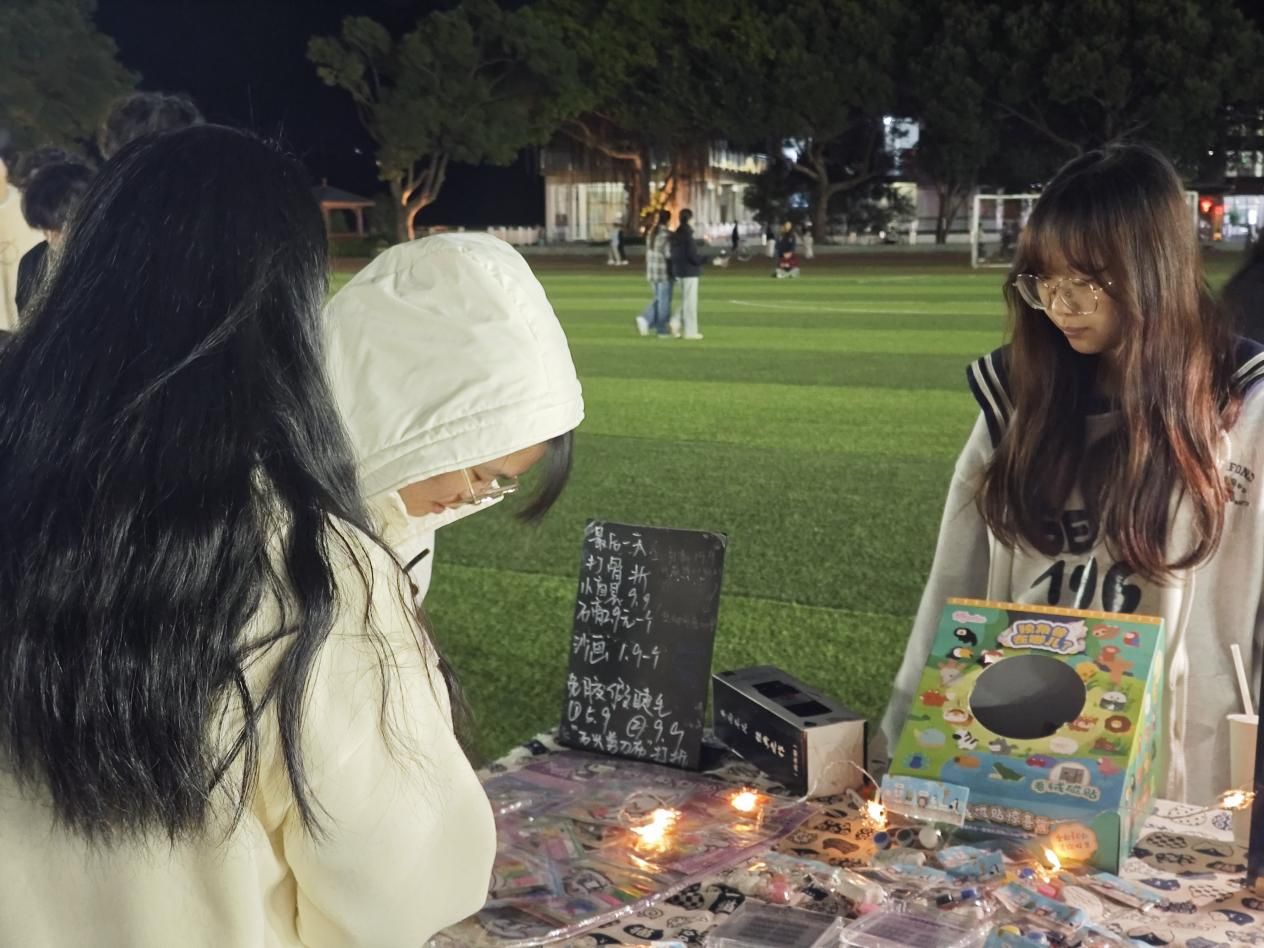 此次夜市活动分为四个区域:新品售卖区、旧物售卖区、诚信交易区、休闲娱乐区。漫步在校园集市,丰富多样的小商品应接不暇,满足同学们的不同购物需求和好奇心;摊主们笑语盈盈、各显神通,热情迎接每一位到来的“顾客”。夜市中有精美的工艺品、DIY制作、动漫周边、心灵疗愈屋……现场还组织了套圈游戏,邀请社团表演,鼓励同学们自主才艺展示等,真正让同学们实现“逛在夜市,乐在其中,践有所获”。
