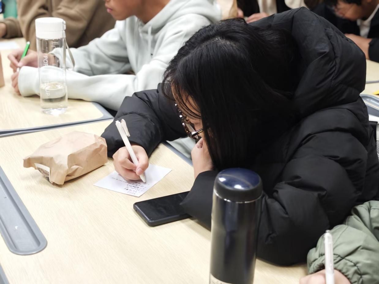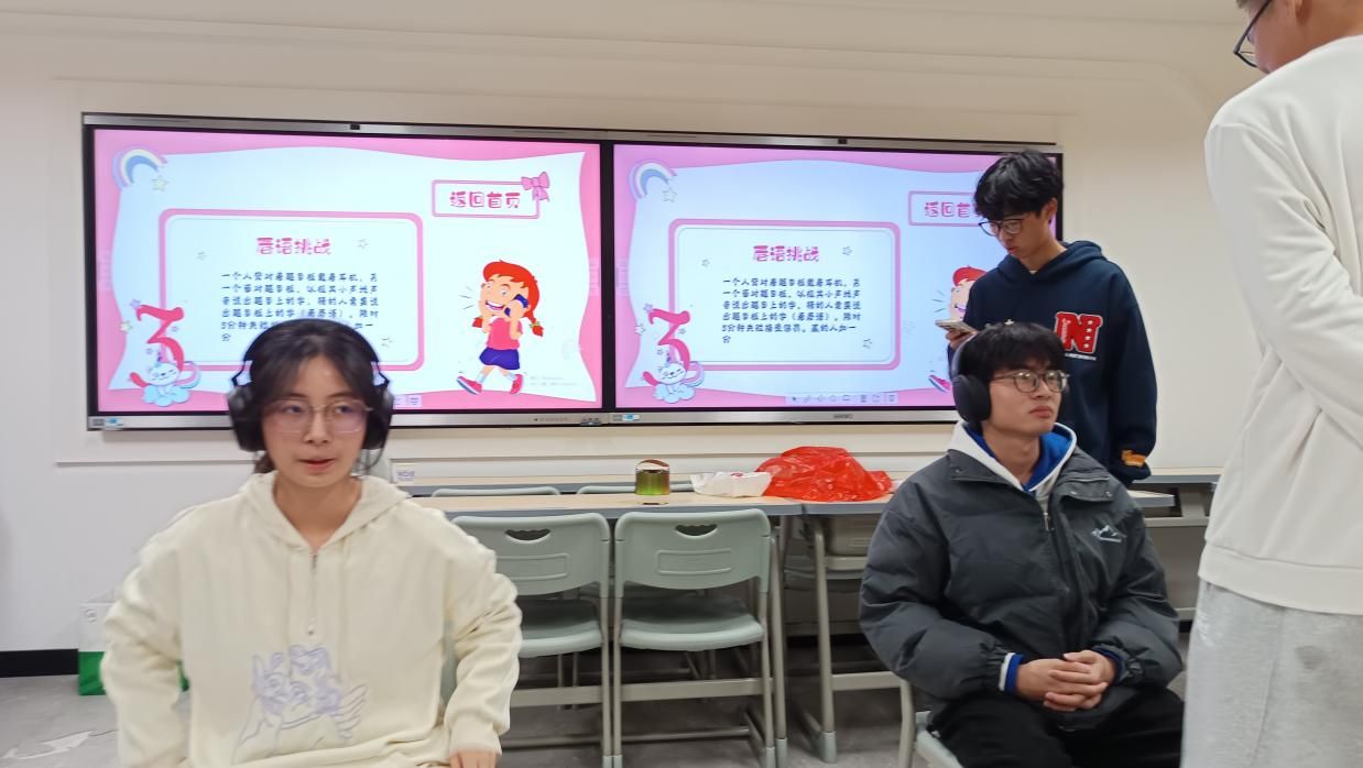 活动在文娱委员兼主持人的热情引领下拉开序幕,班委带领大家进行“你画我猜、编故事接龙、数字炸弹、蒙眼喂食”等游戏,同学们纷纷举手报名,特别是“你画我猜”的环节更是展现出丰富的想象力。通过各种互动游戏,同学们也深深认识到团队合作的重要性和集体的凝聚力,表示要多开展活动以保持班级的良好风气。最后,同学们在辅导员的带领下进行“大学心愿单”的活动,这一环节不仅触动同学们的心弦,更在每个人心中留下了深刻的印记,激发了大家对未来的无限憧憬和期待。