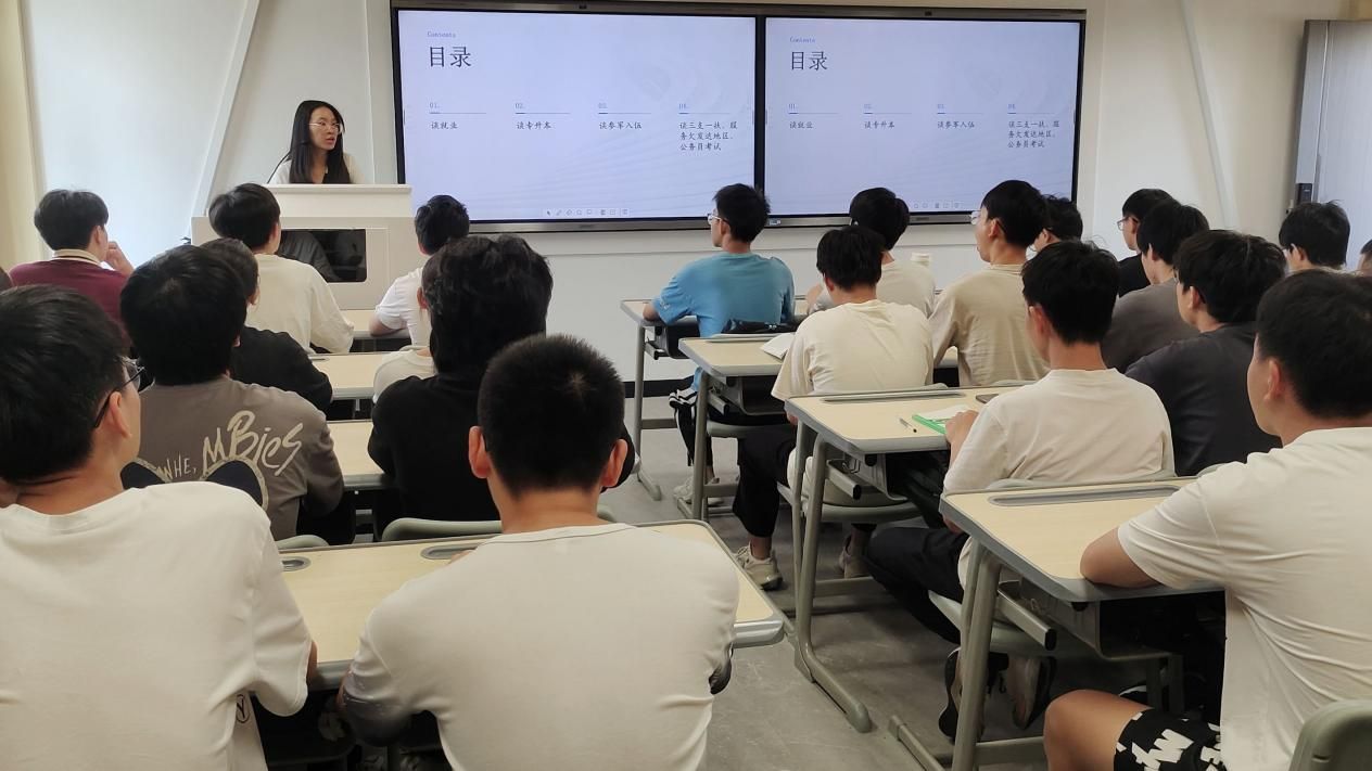 活动伊始,辅导员召开主题班会说明职业规划是一个持续的过程,需要同学们在实践中不断调整和完善,呼吁大家从招聘者视角与求职者视角进行分析,建立自己的职业目标,从而有针对性、高效率的提升自己的综合能力。第二环节班级同学针对严峻就业形势发起讨论,以辩论赛的方式对“先就业还是先择业”展开精彩绝伦的讨论,用严谨的逻辑和出色的表达为同学们带来了一场无与伦比的视听盛宴。现场气氛热烈,同学们沉浸其中,共同见证了思想与口才的激情碰撞。这不仅是一场辩论比赛,更是一次对自我职业规划的深度审视。