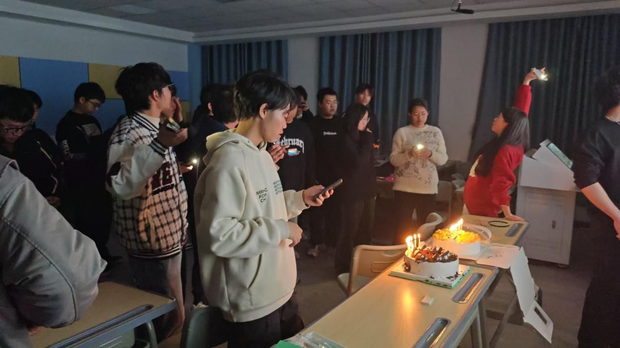 随着游戏环节的结束,团建活动也迎来了高潮。烛光摇曳,歌声响起,全体同学合唱生日歌,音符在烛光里穿梭,为下半年过生日的同学送上最真挚的祝福。大家一起许愿、吹蜡烛,共同分享这份甜蜜与喜悦。愿本次生日会能够增强同学们的归属感、凝聚力,以更加饱满的热情和更加坚定的奋斗姿态继续投入到大学生活中。