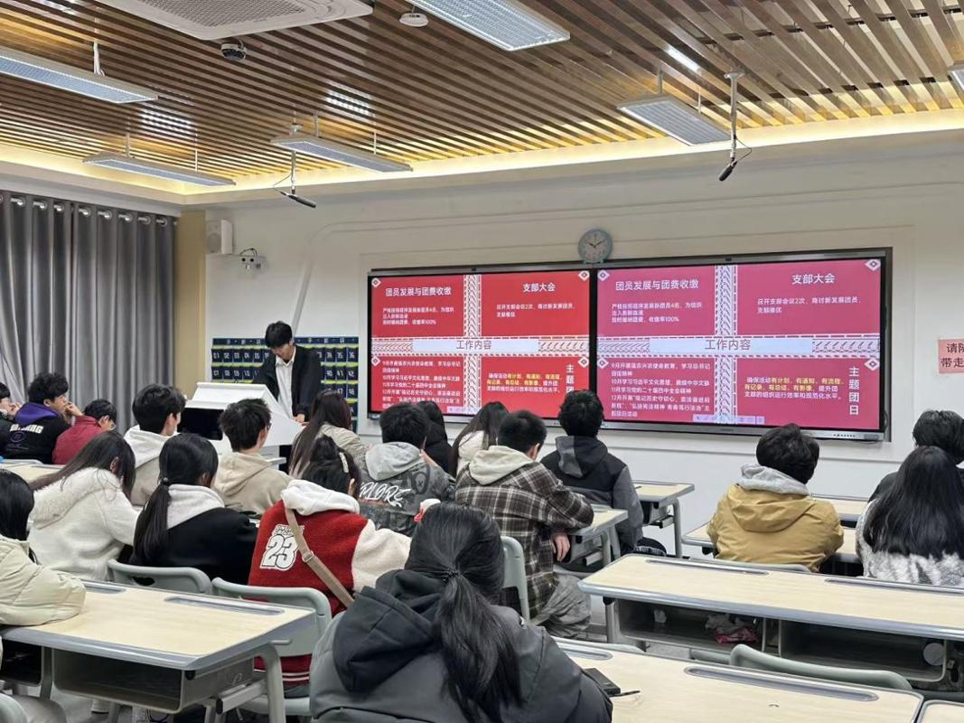 述职环节中,各班委依次上台汇报工作。团支书率先从团支部建设,团日活动开展、团员思想引领等方面总结成果;学委兼体委聚焦学业管理与体育活动组织,分析班级学习情况并提出学习帮扶计划;文娱委员、组织委员、宣传委员则分别就班级文化活动策划、团日活动组织、班级宣传工作进行详细阐述;二课副班也针对第二课堂管理,介绍了服务同学的具体举措。各班委既客观展示了本学期的工作实绩,也坦诚剖析了工作中的不足,并结合班级实际提出了改进方向与下一阶段的工作规划。