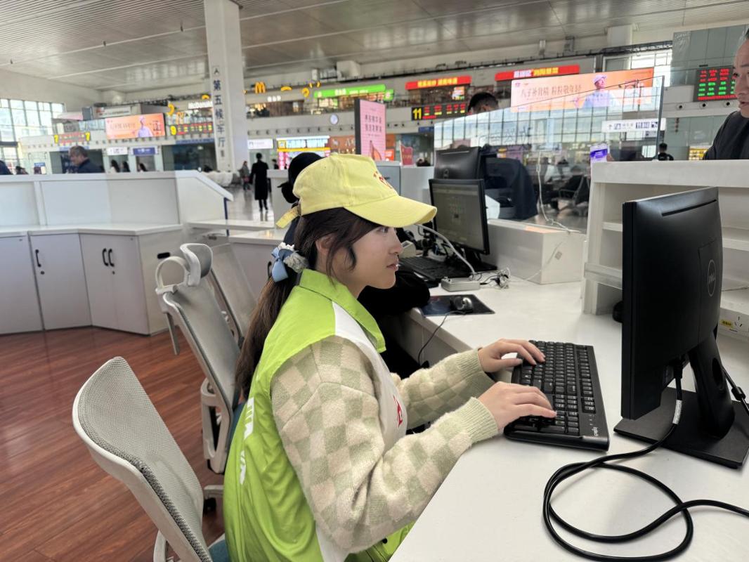 活动当天,计网2401班全体团员统一着装、精神饱满、列队整齐,在火车站工作人员与团支书的统一安排下,快速完成岗前培训与任务分工。大家明确岗位职责、熟悉服务流程,以认真严谨的态度投入到志愿服务中。在火车站候车大厅、售票窗口、进出站口、扶梯旁等关键点位,志愿者们各司其职、协同配合,用耐心与细心为旅客提供全方位服务。志愿服务过程中,大家不怕烦琐、不畏辛劳,主动坚守岗位,以昂扬向上的精神面貌和踏实负责的工作作风,展现出新时代大学生团员的良好素养与责任担当。