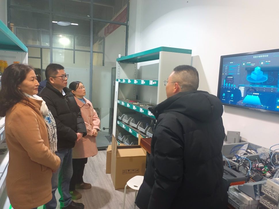 福建云豆网络科技有限公司董事长郑豪杰,总经理郑豪英等公司高管对院党总支副书记陈云德一行的莅临指导表示热烈欢迎。在公司的产品展示区,总经理郑豪英介绍云豆科技部分自主研发的软硬件产品,一款新型手持终端设备,并认真讲解了该设备的使用方法与开发逻辑。