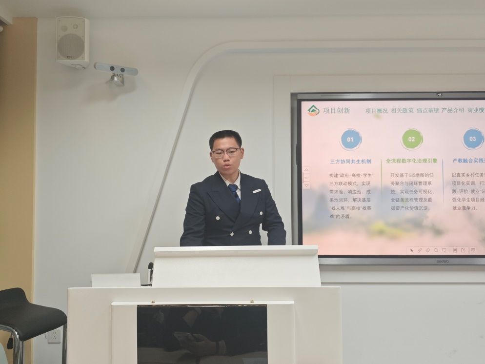 在答辩环节,评委老师们从项目创新性、商业可行性、团队配合、市场竞争力等多个维度,对参赛项目进行针对性的提问。点评中,党总支副书记(主持)陈云德,充分肯定了参赛团队积极进取的态度,高度评价项目中蕴含的创新潜力,鼓励大家保持探索热情、不畏挑战。