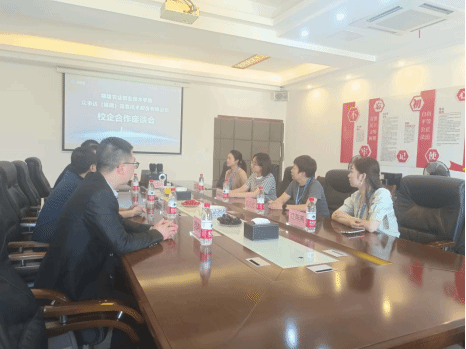 福建中闽文化发展有限公司总经理蔡鹏为党总支书记陈小华一行四人介绍了企业的文化、发展历程、企业的招聘岗位。校企双方就产教融合、人才培养模式、专业建设合作等方面进行了深入的交流。